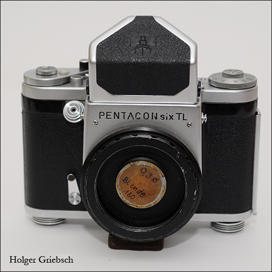 Pentacon Six mit angesetztem Lochblendenadapter.